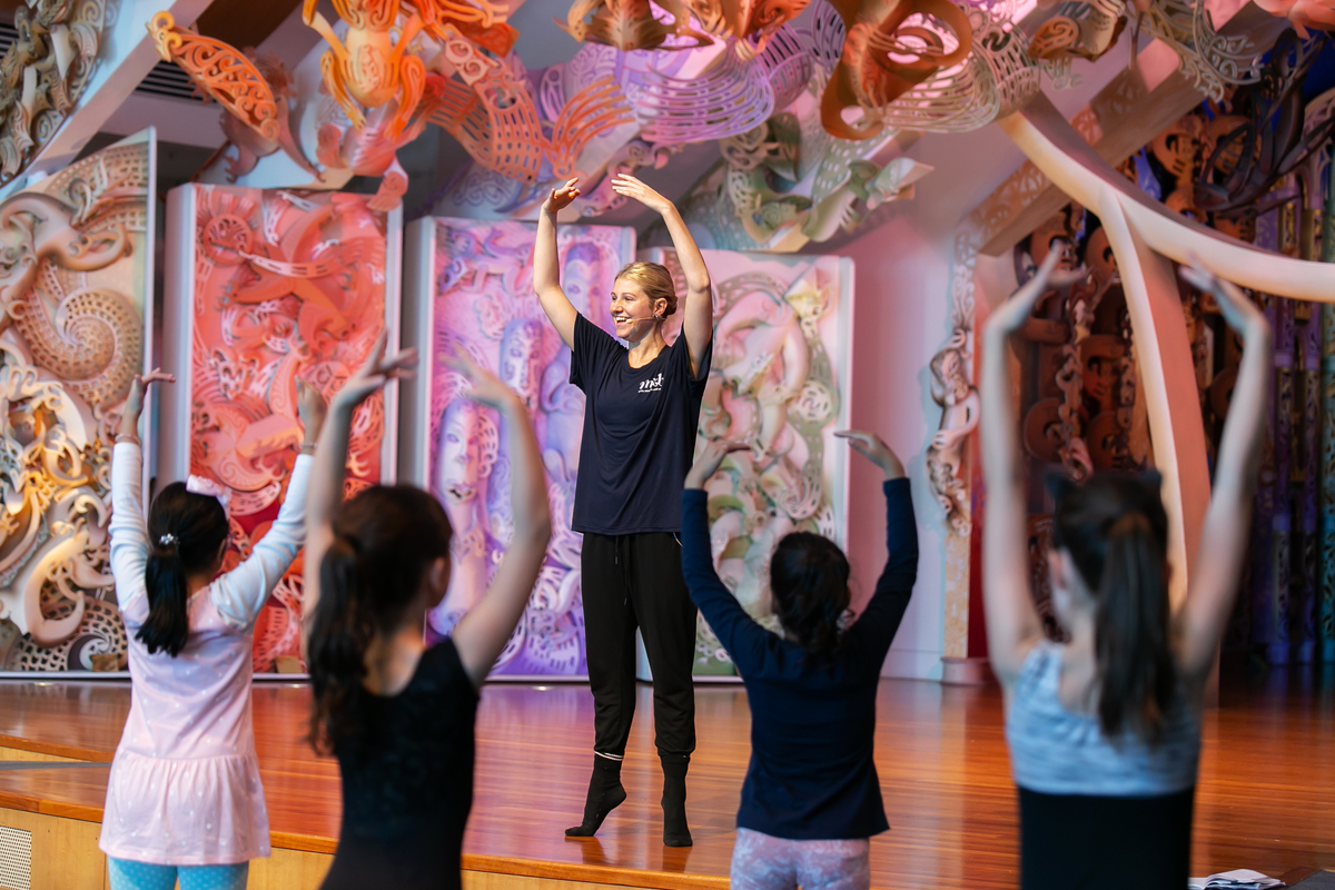 Children and adults of all backgrounds and abilities participate in activities and attend performances and events. This is reflected in the steady growth of the three main strands of the RNZB’s education programme: audiences and communities; dance teachers and dancers; and schools, and in an expanding range of accessibility initiatives. Experienced Dance Educators offer tailor-made, curriculum-linked dance workshops, together with NCEA resources, for primary and secondary schools throughout Aotearoa. Long-term residencies and collaborations are also available. Free digital resources to inspire and support practical engagement with the national ballet company.